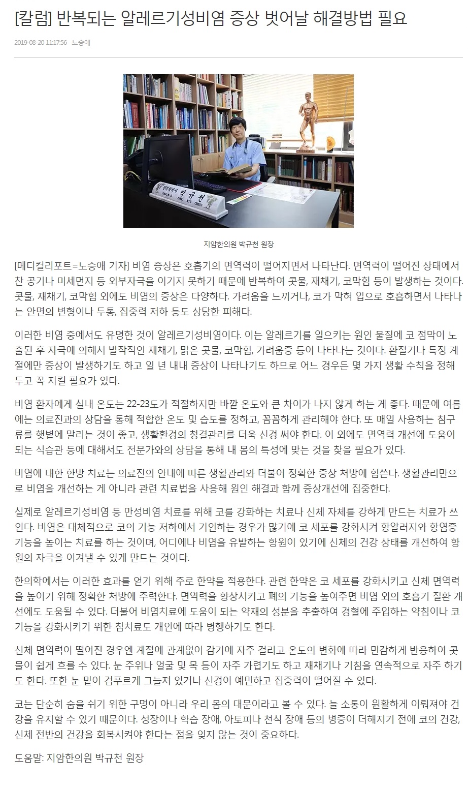 [메디컬리포트][칼럼] 반복되는 알레르기성비염 증상 벗어날 해결방법 필요